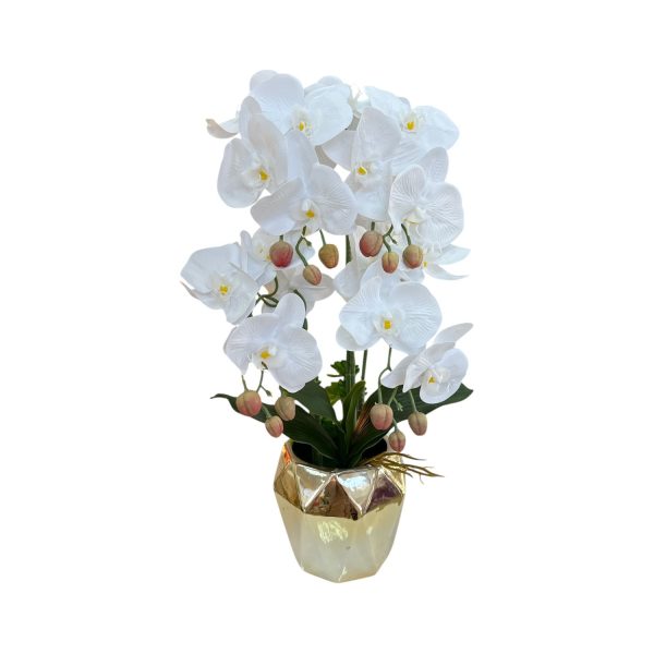 Орхидея в бял цвят със златна кашпа