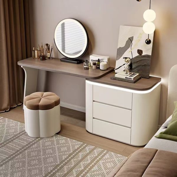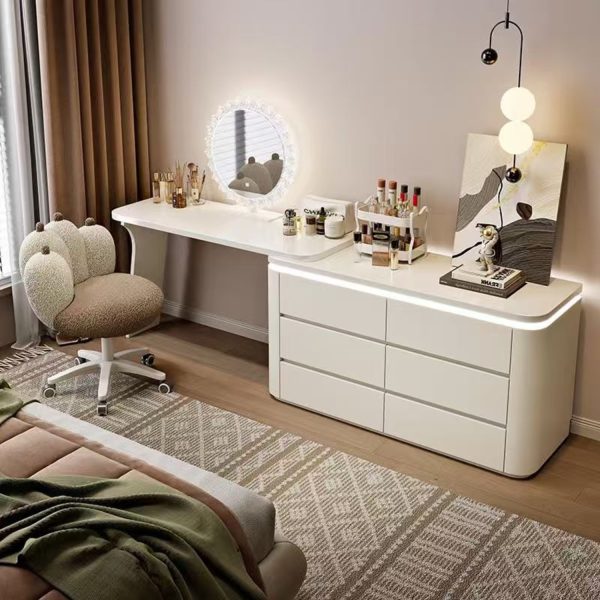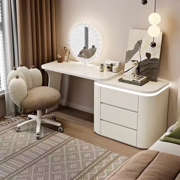 Луксозна дамска тоалетка с ЛЕД огледало и комод, бял цвят, 100×40×76h см