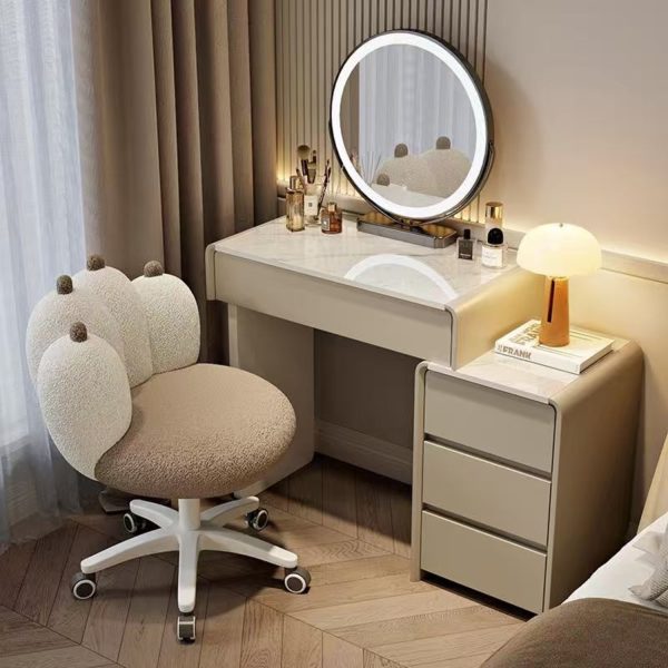 Елегантна тоалетка с кристално LED огледало и мраморен ефект, 100х40х76h cm, цвят слонова кост