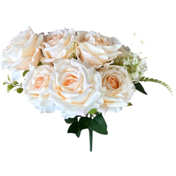Букет от изкуствени бели рози с декоративна зеленина, 9 стръка