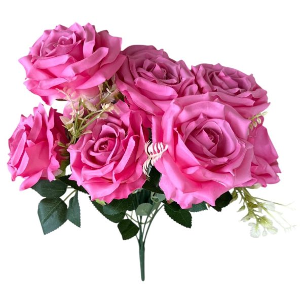 Букет от изкуствени рози в наситено розово, 7 стръка