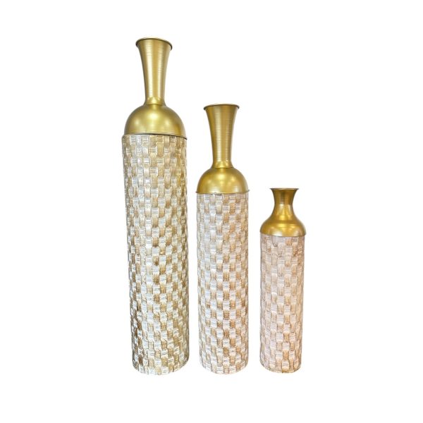 Комплект 3 броя вази в златен цвят с преплетен дизайн