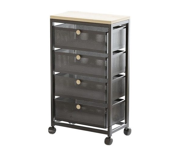 Метален шкаф с плот от МДФ, черен цвят, 4 нива