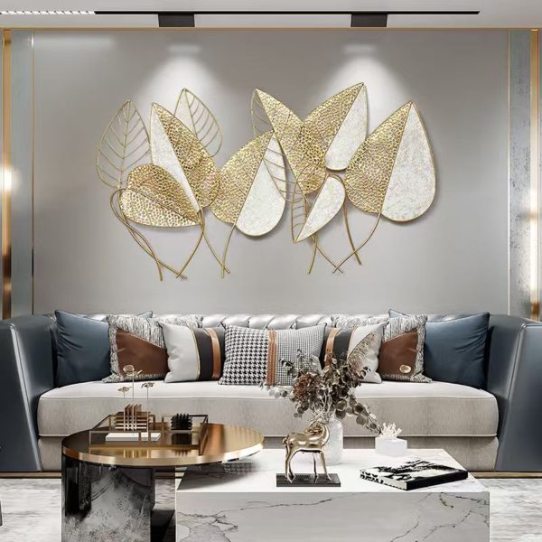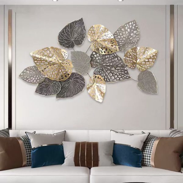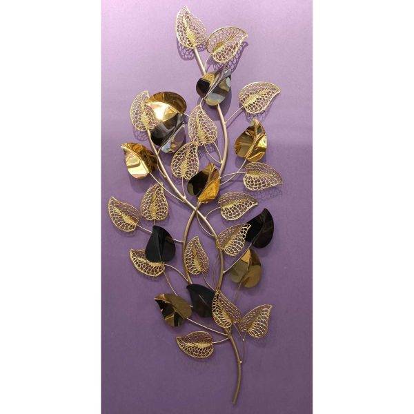 Декорация за стена 130×55h см, листа в златен и сив цвят