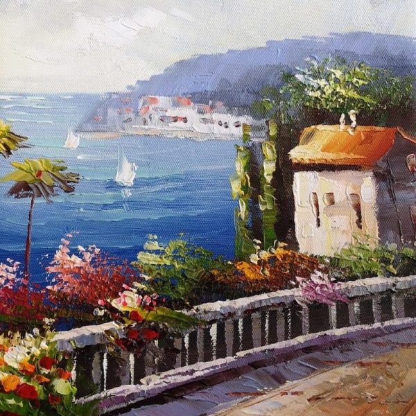 Картина, Средиземноморски пейзаж, Миниатюра, Маслено платно върху подрамка, 20/25 см