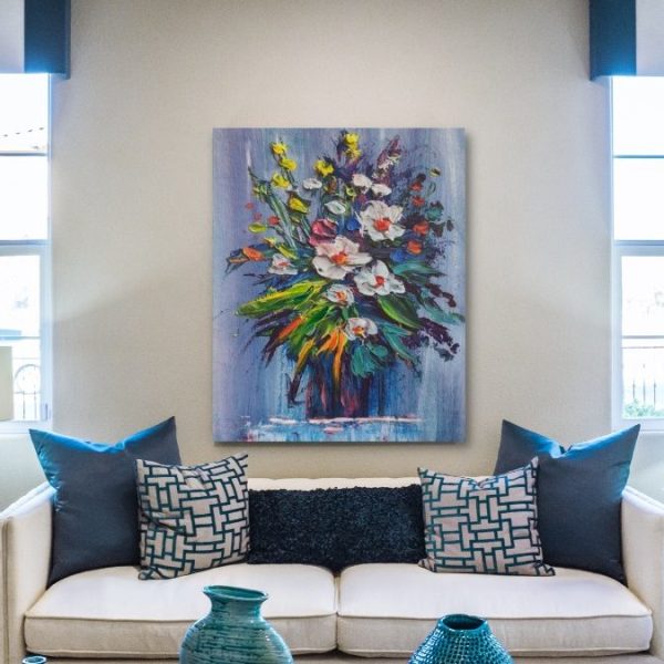 Картина със златна рамка, „Жена с букет край морето“, 60х90h см