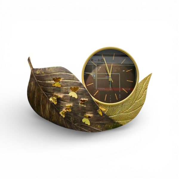 Декоративен стенен часовник с листа гинко – златен акцент за модерния интериор