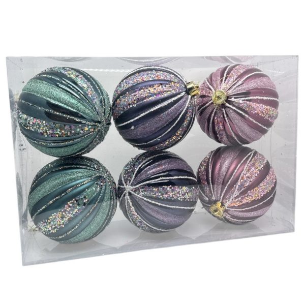 Коледни топки с брокат и гланц – комплект от 6 броя / 15 см