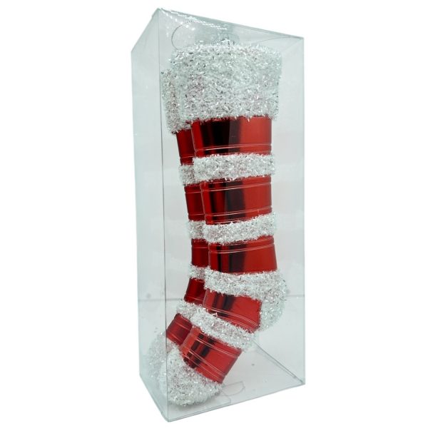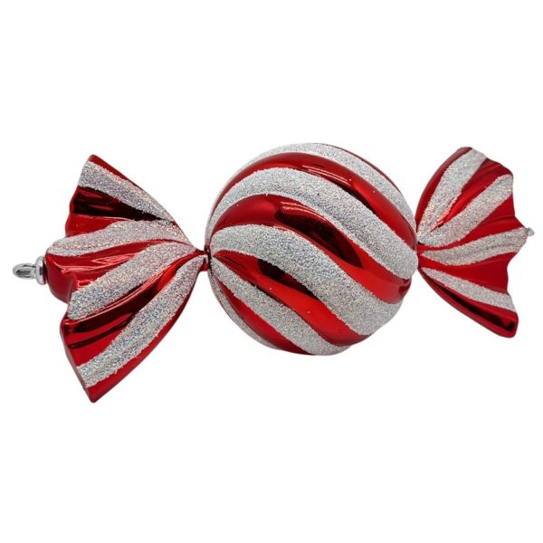 Коледна висяща декорация – червено-бяла бонбонка с розови акценти