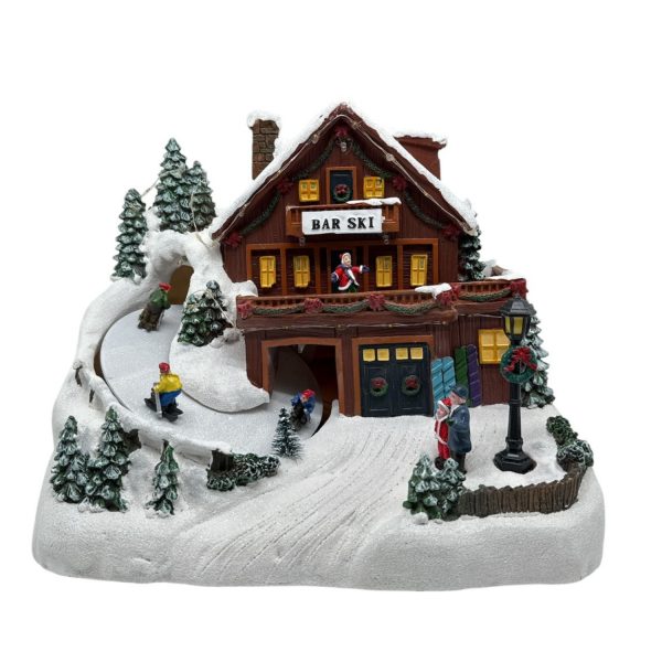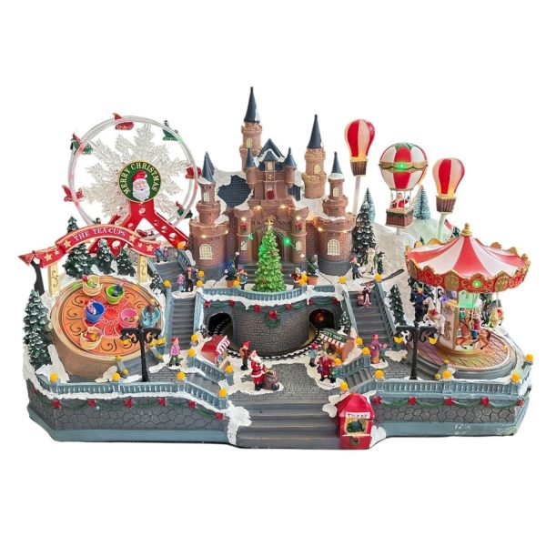 Музикална и светеща коледна декорация – снежен човек с въртящи се около него деца в телефонна кабина