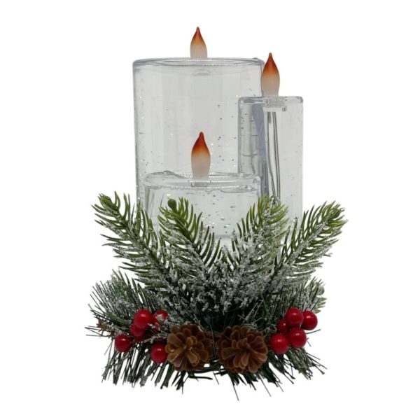 Светеща коледна декорация с 3 LED свещи и зимна украса