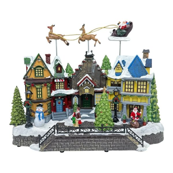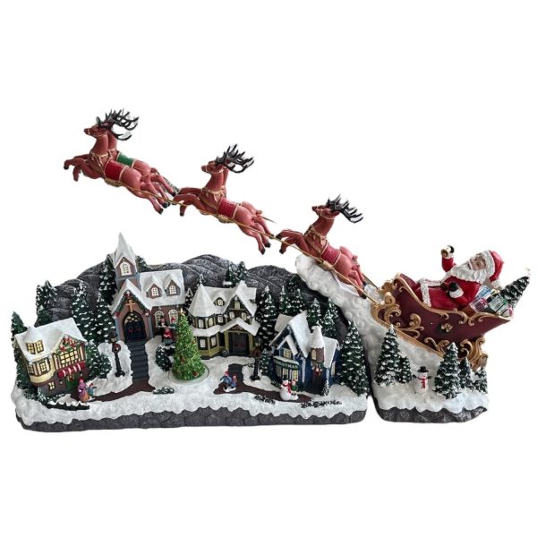 Коледна фигура „Дядо Коледа с елени над снежно селце“