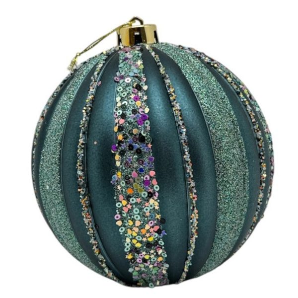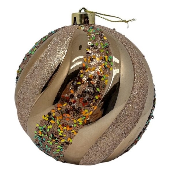 Коледна топка с брокат и цветни пайети – червена / 25 см