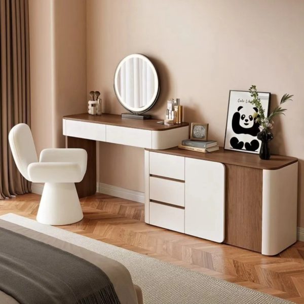 Дамска тоалетка с ЛЕД огледало и двоен комод, кремав цвят, 100х40х76h cm