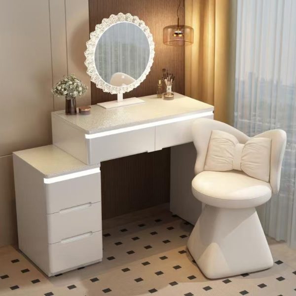 Луксозна дамска тоалетка с ЛЕД огледало и комод, бял цвят, 100×40×76h см