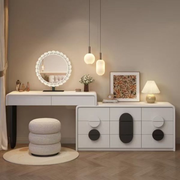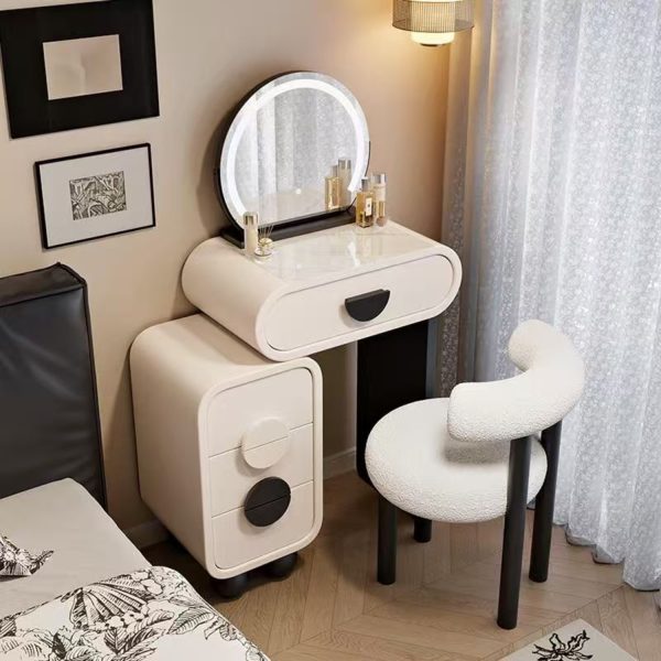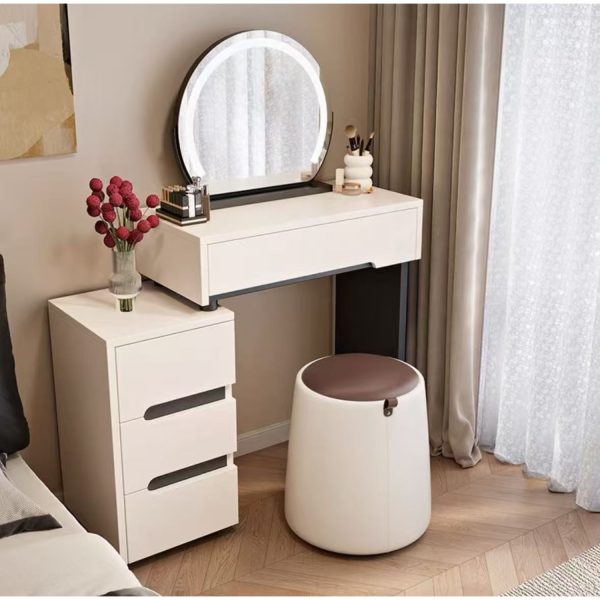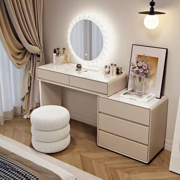 Сет дамска тоалетка, ЛЕД огледало и комод, цвят бежов, 100х40х76h см