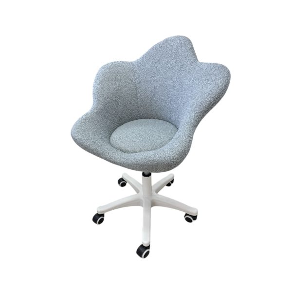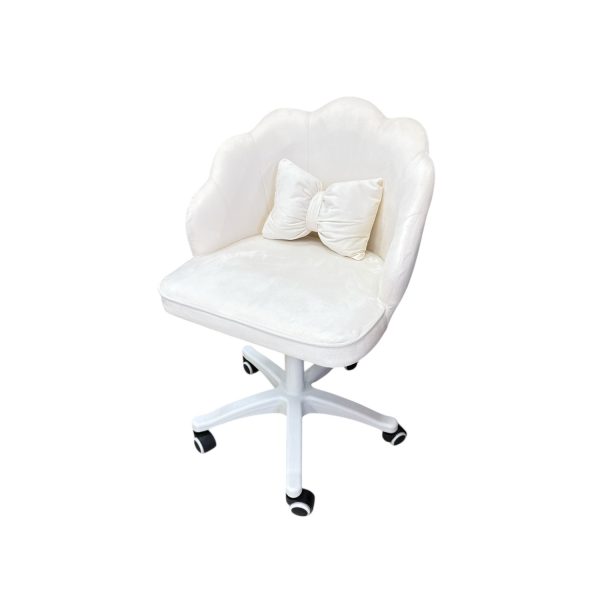 Въртящ се стол с колелца и кадифена тапицерия, бял цвят, 72x62x82-93h cm