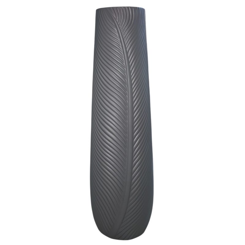 Декоративна ваза в тъмно сиво с релефен десен, 58 см