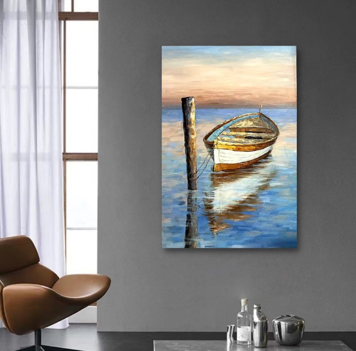 Картина изрработена по технологията дигитално масло с 3D релеф, изобразяваща лодка в морето.