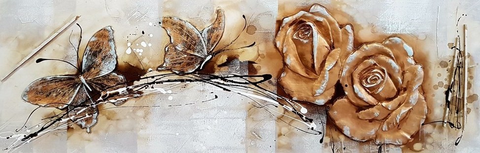 Картина, Златни рози с пеперуди, Релеф 50/150см