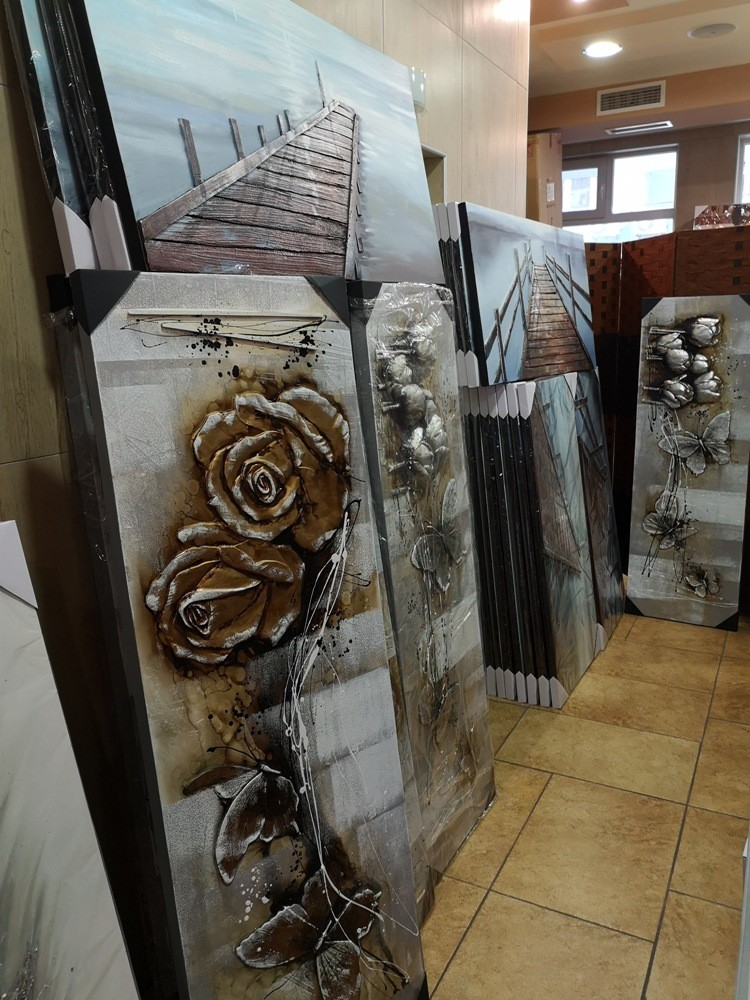 Картината е изработена върху канава по технологията дигитално масло и ръчно добавени релефни елементи.