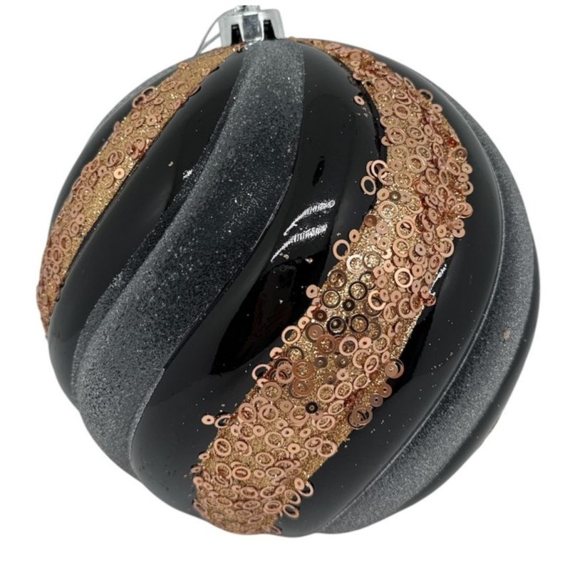 Луксозна коледна топка. Декорирана с брокатени ивици и нежни блестящи елементи за ефектна визия.