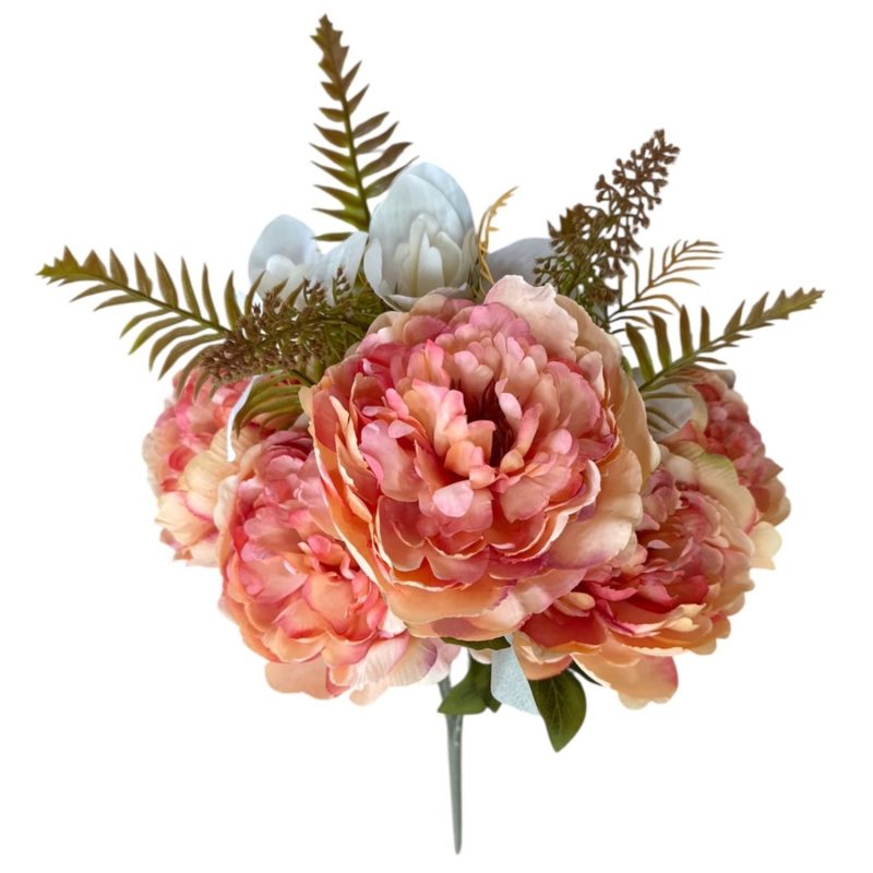 Луксозен изкуствен букет божури с магнолия и зеленина, 11 стръка