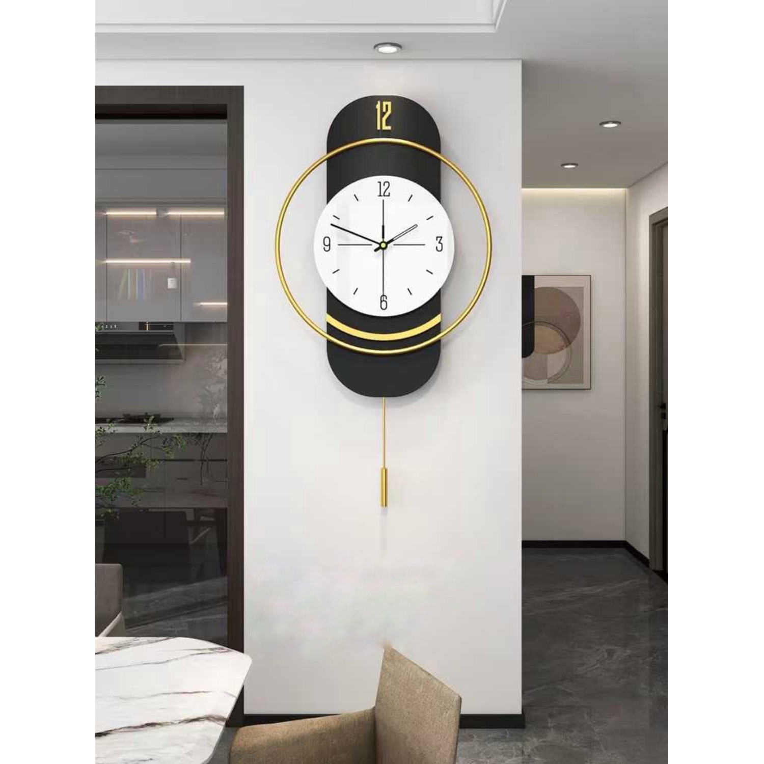 Стенен часовник в златен цвят, черен и бял цвят с безшумен механизъм. Часовникът е подходящ за декорация на коридор, кухня, хол, офис и спалня.