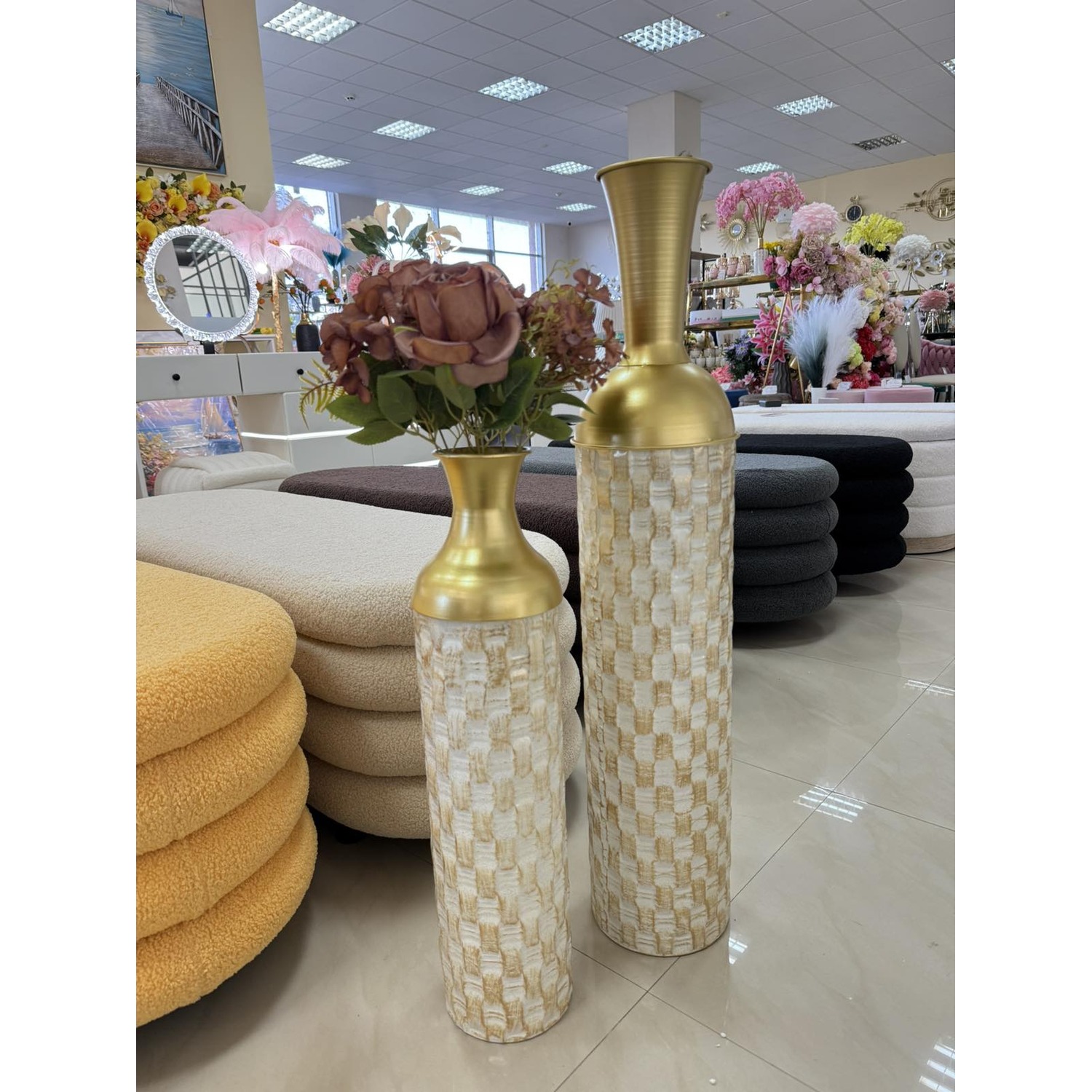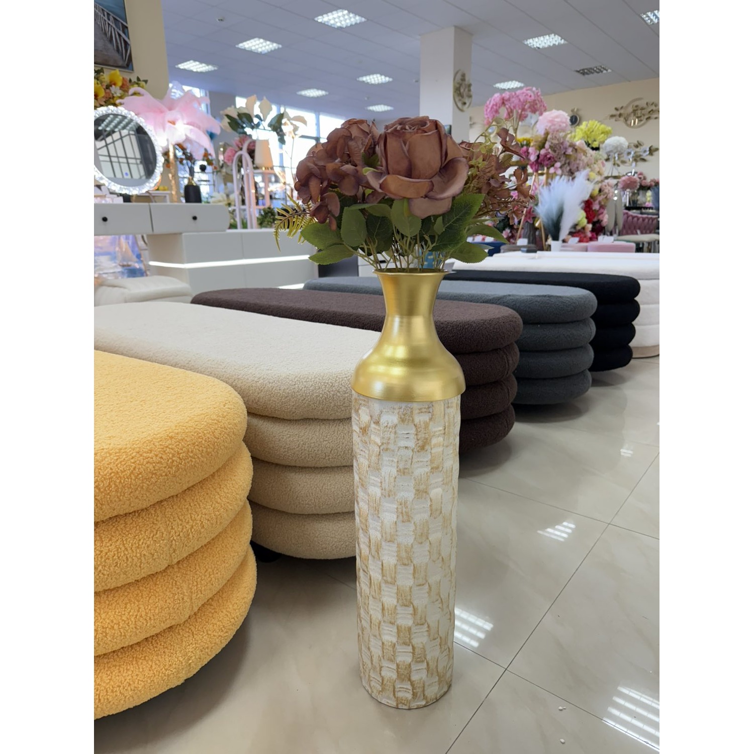 Ваза в златен цвят с преплетен дизайн, 60см